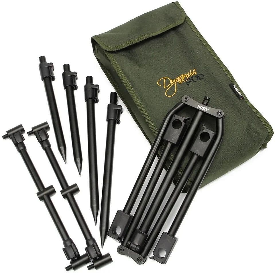 Dynamic by name and dynamic by nature. The NGT Dynamic pod is a lightweight and compact 3 rod pod folds down to fit into a small case which is included. This pod is fully adjustable with both the height and length being extendable. Both buzz bars are also adjustable (a feature quite rare with most pods) meaning it can easily hold standard sized carp reels or big pits alike. The adjustable buzz bars also allow you to adjust the angle of your rods should you wish.